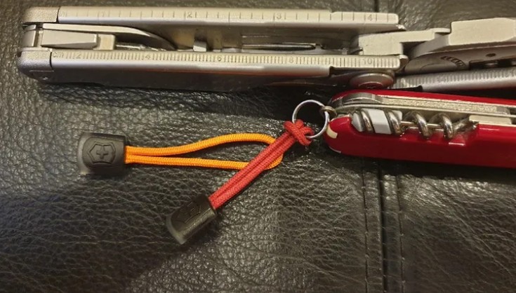 Что немаловажно, можно использовать данный темляк не только для ножей, но и как стильное дополнение к одежде. Цепляю на молнию и ношу, отлично смотрится с черным цветом.